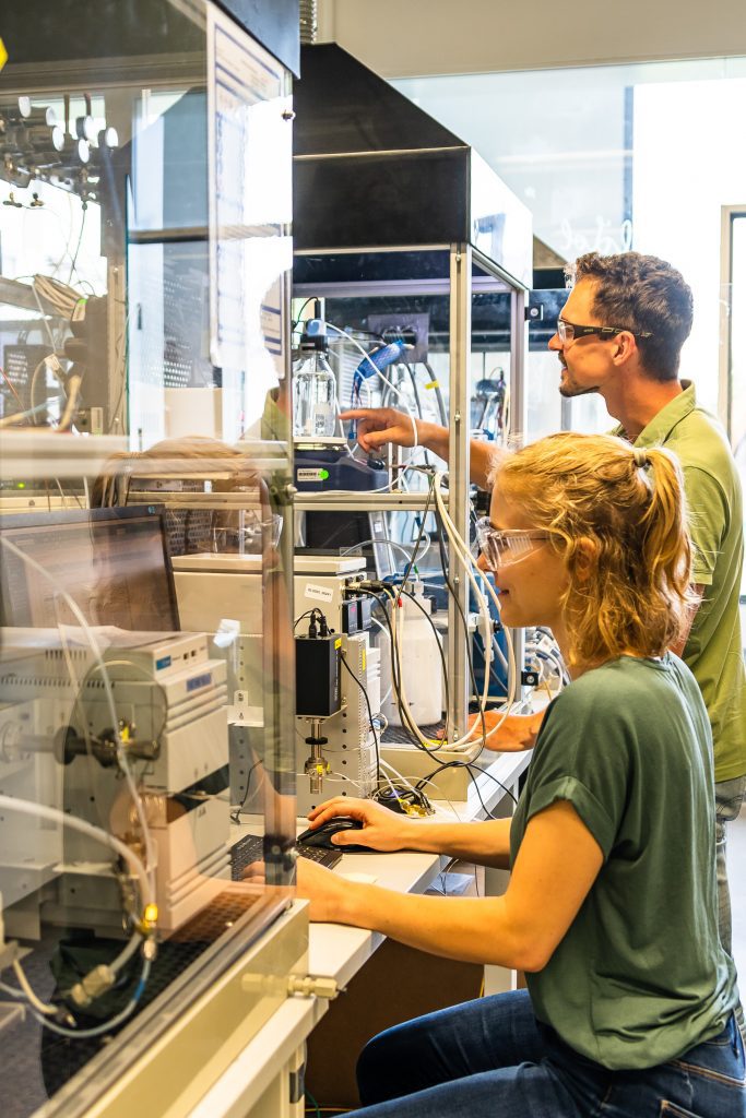 The research of the CO2 electrolysis team focuses on the reduction of CO2 producing CO (and ethylene) using zero-gap electrolyzer. The team consists of engineers and chemists working on catalyst synthesis and characterization, development of membrane electrode assemblies and optimization of operation conditions for CO2 electrolyzer.